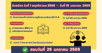 งดเรียน วันเสาร์ที่ 10 สิงหาคม พ.ศ.2567 และ วันเสาร์ที่ 17 สิงหาคม พ.ศ.2567